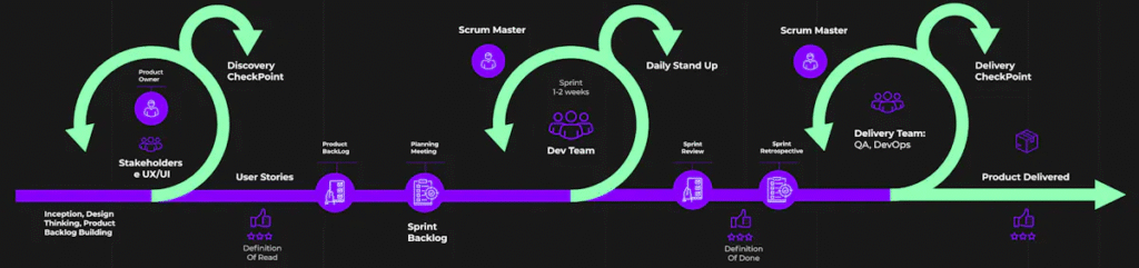 - Q-Desc (Discovery Process): fase de descoberta, entendimento do negócio, levantamento de requisitos e construção do backlog inicial, com foco na visão de valor do cliente;
